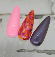 Aphrodite - an orange base with red, pink and purple foil. Orange is the color that represents fertility, red represents lust and passion, pink is for like, beauty and romance, and purple is for sexual frustration, a combination of stability and passion, and beauty and femininity.